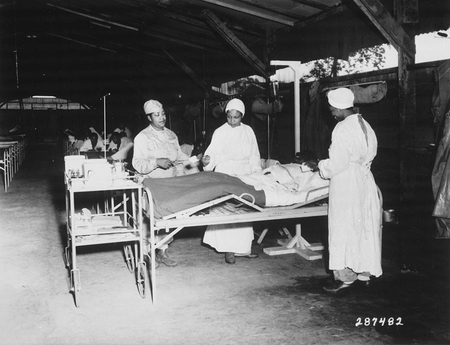△ 在新几内亚外科的的陆军护士︰荷属新几内亚(New Guinea)米尔恩湾(Milne Bay)A基地第268站医院(268th Station Hospital)外科病房的陆军护士。 1944年6月22日。