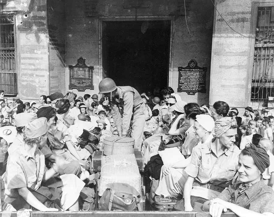 △ 陆军护士后援队抵达圣托马斯︰为了缓解菲律宾马尼拉(Manila)圣托马斯大学(Santo Tomas University)战俘营的护理问题,从驻守在马尼拉的美国陆军中,紧急调遣一批陆军护士抵达战俘营,并立即投入工作。这些护士中许多人第一次距离拼命战斗的日本兵只有几百公尺。
