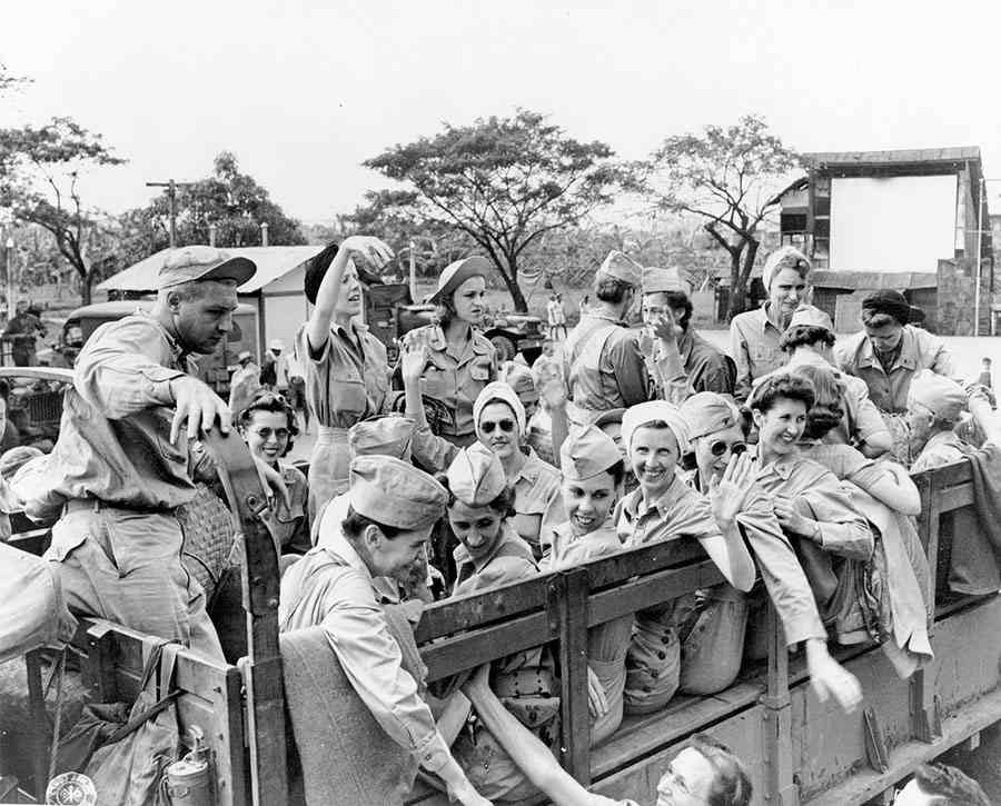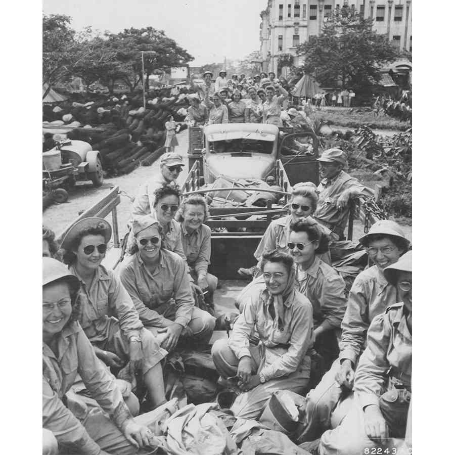 △ 1945年获释的美军护士离开马尼拉︰来自巴丹(Bataan)和科雷吉多岛(Corregidor)的美国陆军护士在圣托马斯拘留所(Santo Tomas Internment Compound)被监禁3年后获释,他们爬上卡车离开菲律宾吕宋岛的马尼拉(Manila, Luzon, Philippines)。