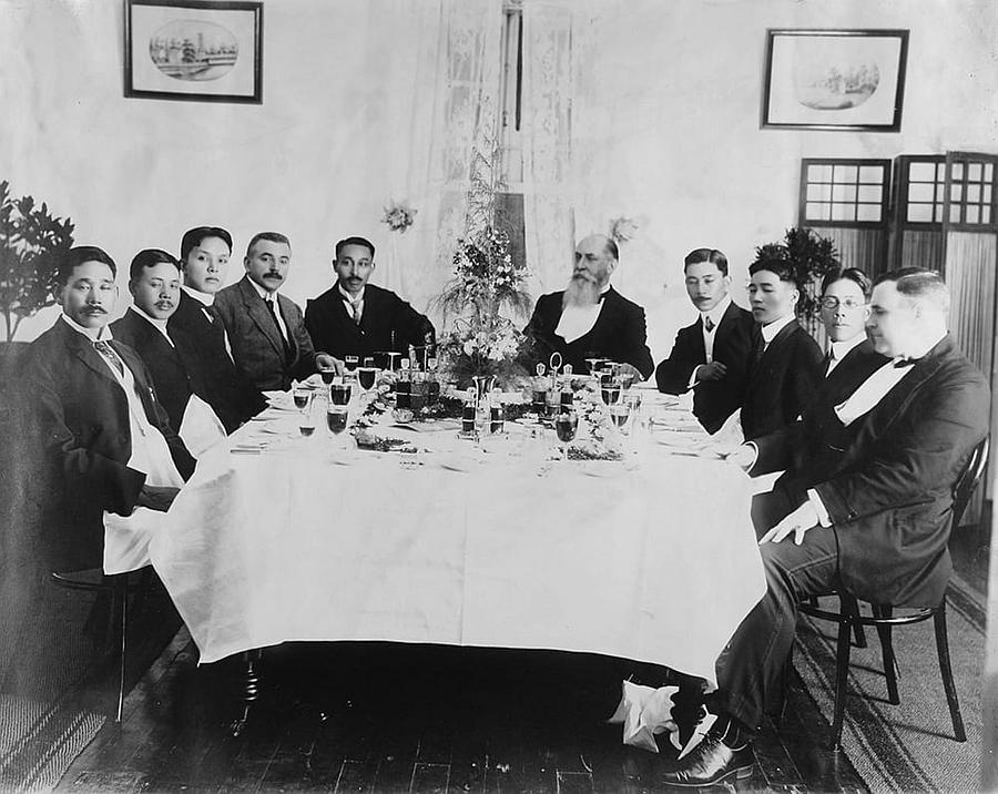 △ 外资银行不仅分佈在上海,也分佈在其他通商口岸。他们参与了一系列活动,包括贸易融资和为中国政府在海外债券市场筹集资金。外国银行业的谈判代表们纷纷与中国政府官员进行接触。上图为1913年,臺湾银行经理在汕头举办的一场商贸谈判会议留影。