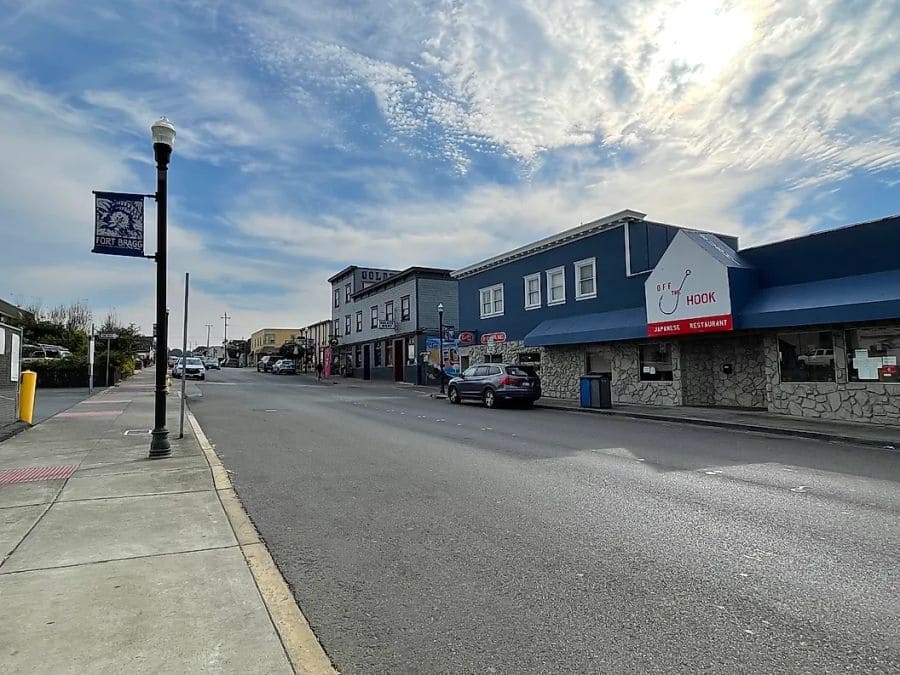 △ 布拉格堡(Fort Bragg):布拉格堡位于加州北部海岸,三藩市以北约 180 英里处。该镇面向崎岖的海岸线,拥有嶙峋的悬崖和沙滩。诺约港(Noyo Harbor)至今仍是一个繁忙的渔港,船隻在平静的沿海水域穿梭。几英里以南是历史悠久的卡布里洛角灯塔(Point Cabrillo Light Station)。