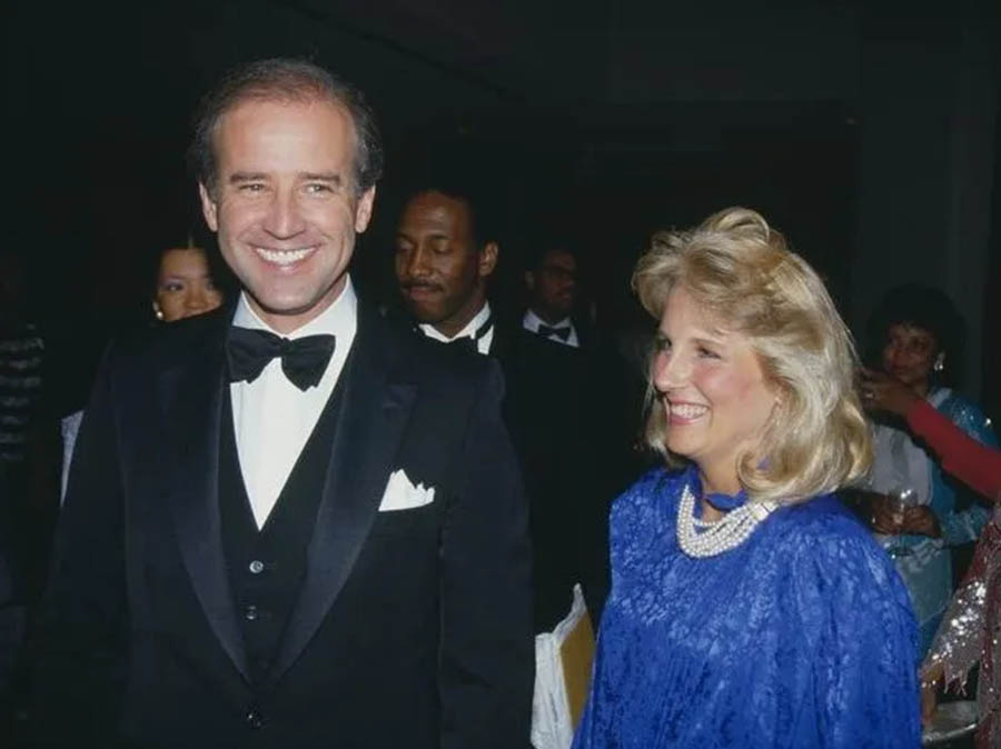 △ 1972 年,拜登(Joe Biden)在一场悲惨的车祸中失去了第一任妻子和一岁的女儿,留下他独自抚养两个儿子亨特(Hunter)和博(Beau)and。 3年后,他遇到还在德拉瓦大学(University of Delaware)就读的吉尔(Jill Jacobs)。他们最终于1977 年6 月17 日在纽约市(New York City)联合国教堂(the United Nations Chapel)举行了小型婚礼。拜登后来担任美国第46任总统(2021–)。