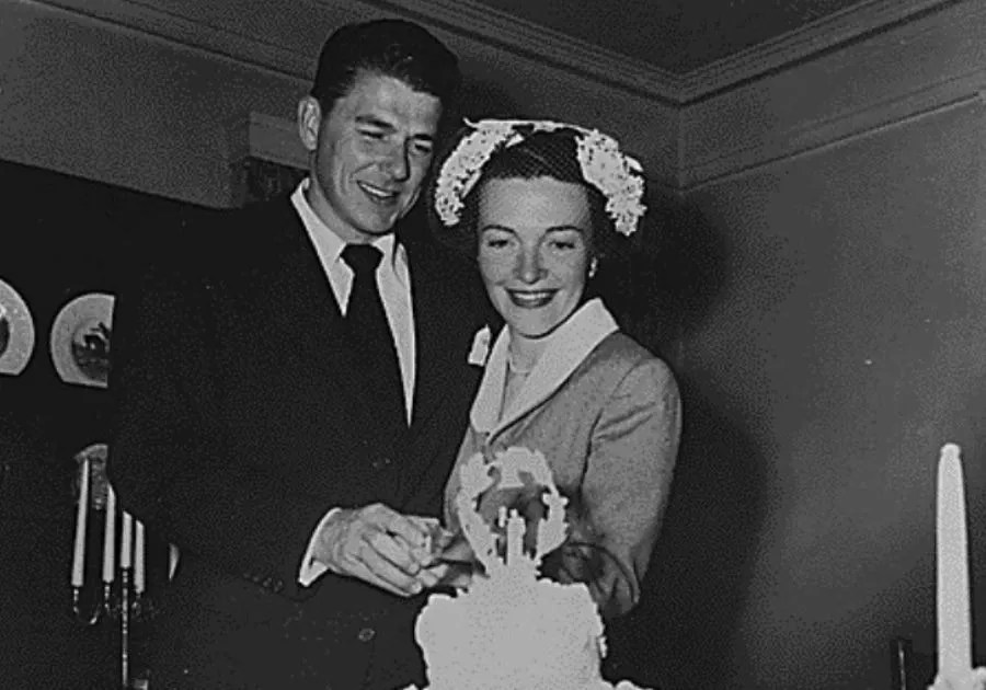 △ 当时,南茜·大卫斯(Nancy Davis)是一位受人尊敬的女演员。 1949年,她遇到了时任美国演员工会(the Screen Actors Guild)主席的雷根(Ronald Reagan)。二人在1952结婚。罗奈尔得的元配简·怀曼Jane Wyman因为不赞成丈夫从政而离婚。雷根后来担任美国第40任总统(1981–1989)。