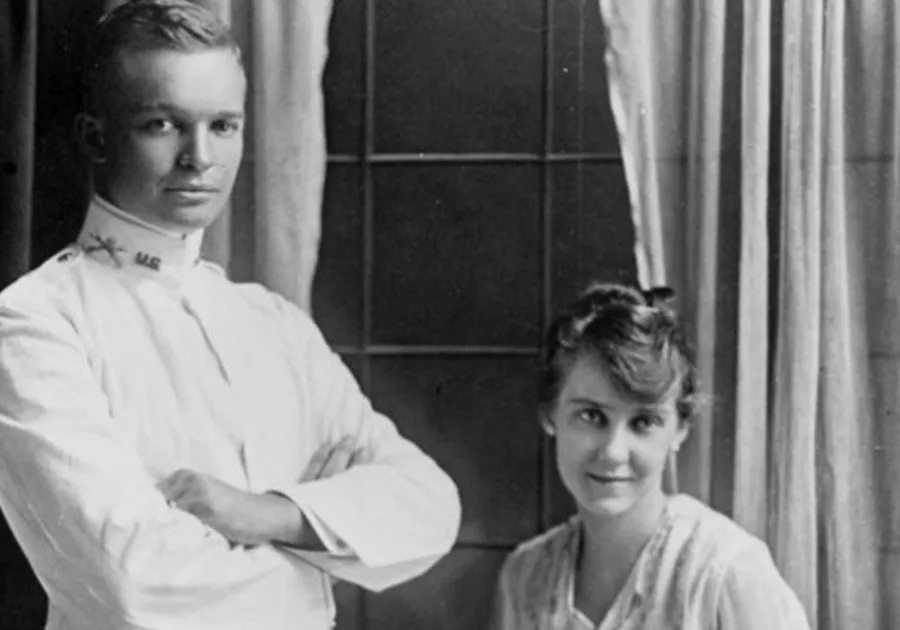 △ 尽管年龄相差6岁,姞内娃(Geneva Doud)还是于1916 年与年长25 岁的陆军中尉艾森豪(Dwight D. Eisenhower)结婚。他们在科罗拉多州丹佛市(Denver, Colorado)她父母的家中结婚。艾森豪曾任美国第34任总统(1953 - 1961),并于第二次世界大战期间,担任盟军在欧洲最高指挥官,军中士兵都称呼他为艾克(Ike)。