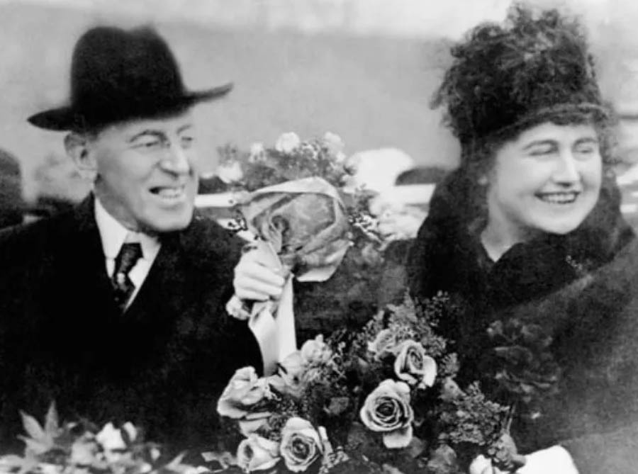 △ 1914年,威尔逊(Woodrow Wilson)的第一任妻子埃伦(Ellen Axson)去世一年后,他就认识了伊蒂丝(Edith Bolling Galt)。几年前,伊蒂丝的第一任丈夫也去世了。两人于1915 年在华盛顿特区结婚,两年后的1917年,威尔逊当选为美国第28任总统(1913年–1921年),曾获颁诺贝尔和平奖。事实证明,伊蒂丝作为威尔逊的顾问非常称职。