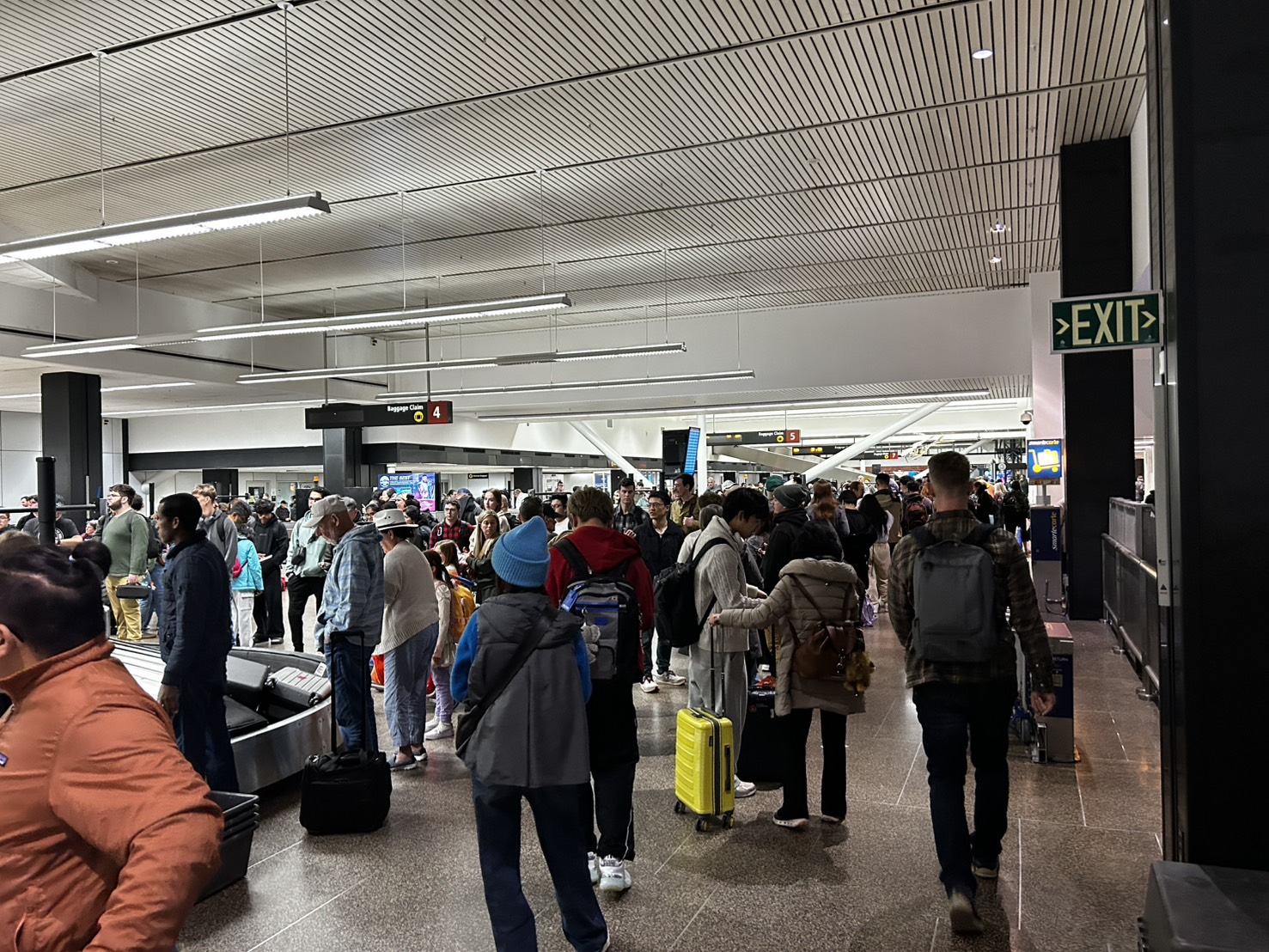 等到我可以跟行李柜檯人员讲话时,已经半夜两点半了。服务人员查了我的行李资料,跟我说目前这批行李还没出来,预定两个小时左右会出来。我一想,天啊,所以我得四点半再过来拿囉。离开前,我又多问了一句说:「那如果我早上再回来拿,可以吗?」服务人员说可以,只是到时要请我再来柜檯查询行李被放到哪边。(我的天,所以到时又要排一个多小时的意思吗?!)