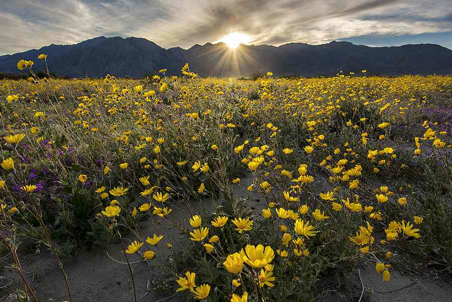 美国加州许多地方都会被色彩缤纷的野花装饰着,但一些最引人注目的花期,却发生在沙漠景观中。