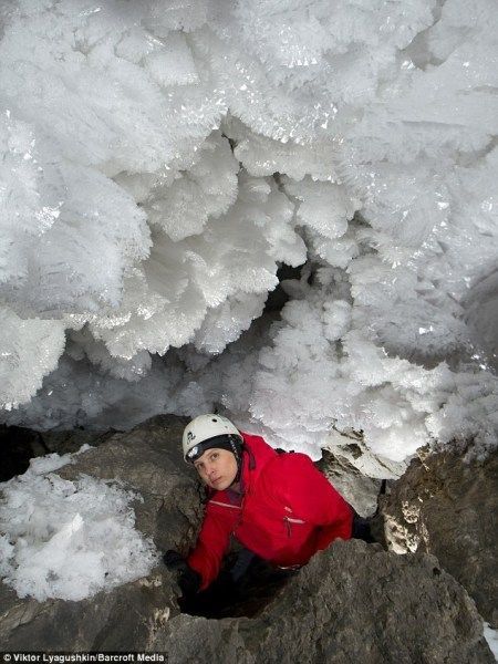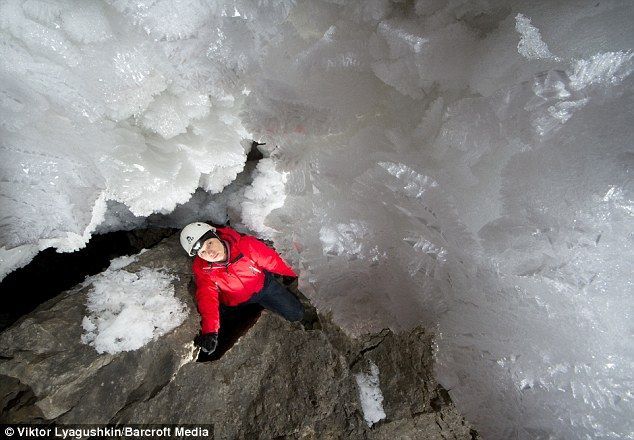 孔古尔冰洞的洞顶覆盖着厚厚的晶体,让这个冰洞好似一个巨大的珠宝盒。