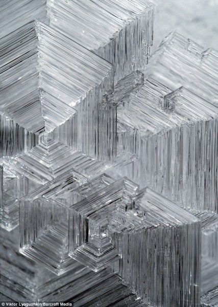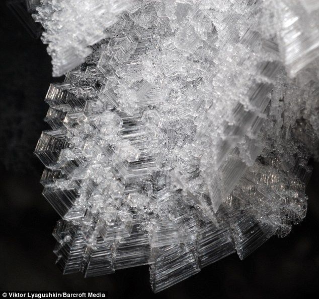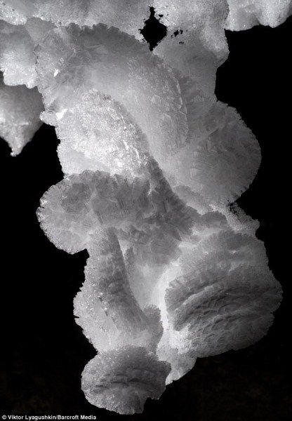 孔古尔冰洞内的冰晶特写,呈现出令人吃惊的几何图案。