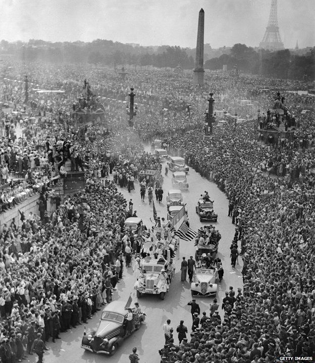 1944年8月26日,巴黎人走上街頭,向戴高樂歡呼致意
