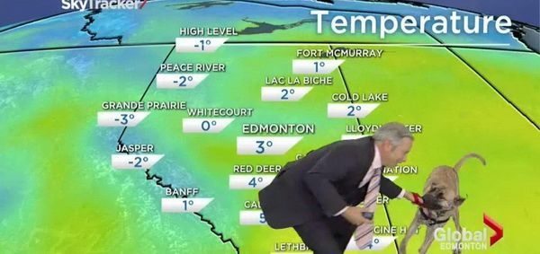 【新三才综合报道】在影视界有句名言,「最难拍摄的就是小孩跟宠物」!加拿大环球电视台的气象主播Mike Sobel如果现在听到这句话,应该会点头如捣蒜。