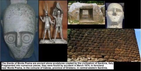 而巨型石雕中的最杰出代表当数Monte Prama的巨型雕像群了,可追溯至公元前10到8世纪之间,静静地耸立在西尼斯半岛中部的一块大墓地附近。这些巨型石雕于1974年偶然被发现,当时已然坍塌成碎片,经查验,这些碎块分属于44座雕像。