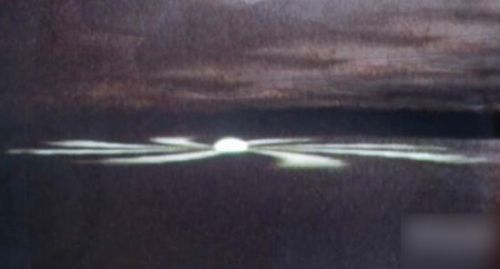 这两个奇怪的光轮,在海面上围绕着自己的船旋转着,几乎擦到了船边。光轮跟随着轮船前进,大约20分钟后才逐渐消失。