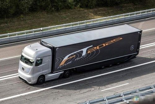 Mercedes-Benz的2025年未来大卡车配备了雷达感应和摄像科技,使车子可以启动自动导航模式。控制导航的是一个类似飞机自动驾驶功能的“Highway Pilot”系统,车头前方底下的雷达可实时扫描前方250米和70米范围的状况。较高的位置有个立体摄像机,可扫描前方100米和45度水平和27度垂直范围。这个立体摄像机,可监视单或双车道道路上移动或静止的物体和行人。