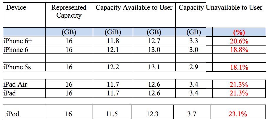 消費者不希望廣告中稱的設備容量跟實際設備可用容量不一致。這種要求非常合理,操作系統共和其他設備存儲空間佔用太多內存空間比例的話,會讓消費者在實際使用中只能夠使用“有限的存儲空間”。