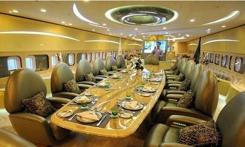 值得一提的是,设计师按照王子的需求,在机身内隔出了多个功能完备的套房:一间是供王子本人使用的总统套房,内部陈设采用中东与西方合璧的装潢风格;一间是用来举行国际会议的高科技会议室,整个桌面可以触屏使用,宛如一个巨大的IPAD!