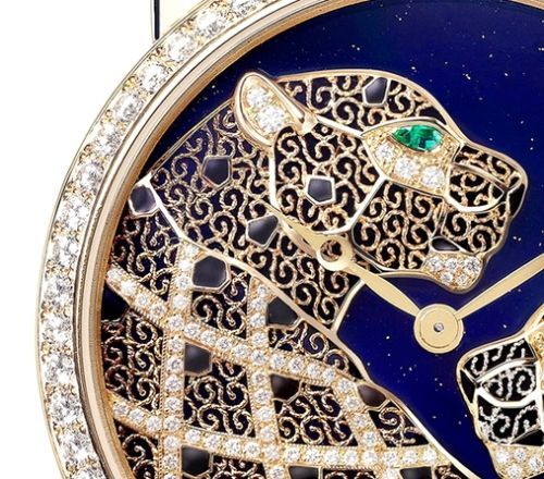 Ronde Louis Cartier Filigrane金银丝细工美洲豹装饰腕表