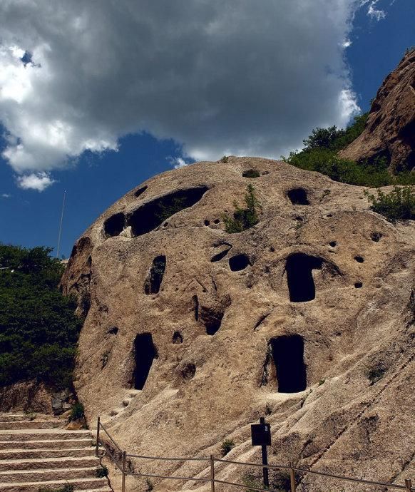 而我認為,雖然奚族是以帳篷為屋,但為了逃避統治者的追逐,洞穴居成為了他們無奈的選擇,因為有山體的掩蓋,才不容易被發覺,這也可以解釋為什麼古崖居的房間都是坐東向西,因為只有居住在山的背陰處,才更容易藏匿。那麼,既然他們曾住在這片山崖上,曾在石屋裡燒火做飯,在下面的馬廄餵飽牲畜,到“官堂子”舉行祭祀……可是,既然周密規劃、投入心血打造了一個家,這些人為什麼又拋下它,消失得無影無蹤?如果說這裡是奚族人的家,那麼,歷史文獻又可以為我們提供一條線索:奚人在“北山”生活了大約30年,之後被契丹發現,強行遣返東北故鄉。如今,奚人已乘黃鶴去,此地空餘古崖居。時光荏苒,一天表層山體坍塌,露出了山崖石屋這一奇觀。