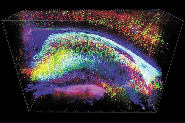 这是新的脑成像技术创造的第一个“透明大脑”,图中是一只小鼠的海马体。这种名为“明澈”(CLARITY)的技术,用溶剂除掉所有脂质后产生透明效果。传统技术只能得到二维切片,而该技术可以得到神经元三维分布。