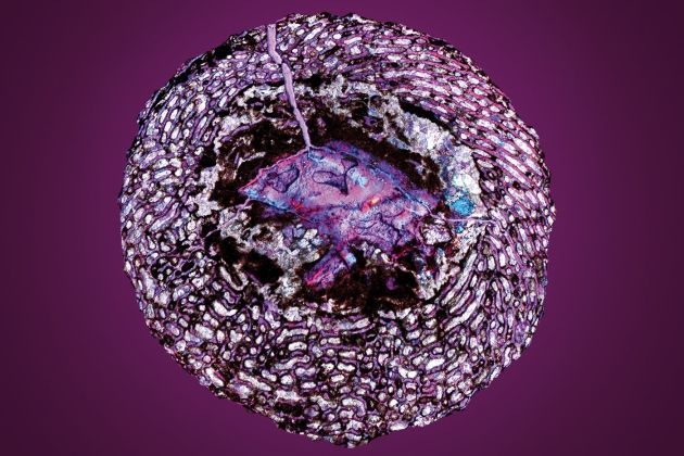 图中是一块骨头的横截面,这块骨头属于一只恐龙胚胎,距今已经有1.95亿年的历史。它来自中国一处骨床地层,是大约200个骨化石样本之一。这一难得的发现为恐龙发育提供了全新的数据。