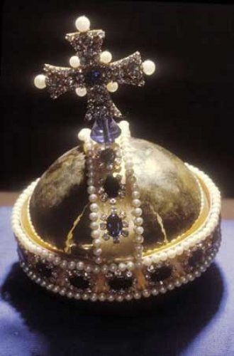这顶王冠代表着英国国教首脑的基督教权利,它是为查尔斯二世的加冕礼而制造,镶嵌了珍贵的宝石和珍珠。