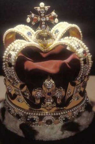 圣爱德华王冠是英国王室的王冠之一。这个王冠专门用于新君主的加冕礼,同时也是伊丽莎白二世加冕使用的王冠。它是为1661年查尔斯二世的加冕礼而制造。真正的圣爱德华王冠,已经在克伦威尔的命令下和其他的珠宝一起融化掉了!底座上有交错的百合花,上面围着两个拱形的十字架,中间是天鹅绒的帽子并带有貂毛的镶边。王冠用金子制成,并镶嵌了444颗珍贵宝石!最初,为了准备加冕礼上面镶嵌了许多宝石,后来宝石都被拆下来只剩下了底座。然而在1911年,那些宝石被永远地镶嵌在了王冠上。