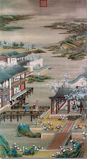 總體把握了整個園林的音樂藝術與建築及其景觀的總體效果之後,蒙托邦還強調要完成這別具一格的古董式文明的艱鉅及其深深蘊含的文化底蘊。1744年乾隆命人畫的畫冊裡只有少數幾張是畫圓明園裡宏偉的廟宇的,其他絕大部分畫冊裡都沒有。不過人們在頤和園和香山遊覽的時候從後期附建的建築中還能夠感受到被燒毀的廟宇的莊嚴。