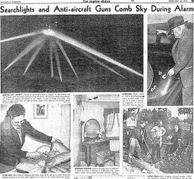在阿诺德目击飞碟之前五年,洛杉矶也曾是一个飞碟喜欢光顾之地。在1942年,在珍珠港事件三个月之后,有不明物体飞过了洛杉矶,但是在当时人们并不把它当做一个奇异的现象而是一个威胁,把它当成了日本的战机,而且美军还发出了将近1400驾飞机用来防御。