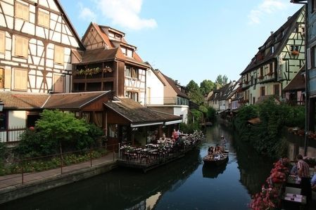 科玛(Colmar) 位于法国东部,是亚尔萨斯(Alsace)南北绵延一百七十公里“酒乡之路”(Route des vins)的重镇。建筑涵盖中世纪及文艺复兴风格,走在石板路上,看着两旁可爱的半木造彩色屋子、被装饰得花团锦簇的窗台与街道,让人自然而然就会放慢脚 步,享受漫步街头的闲情雅意。