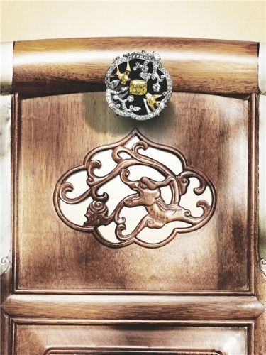 系列18K 白金镶黄钻及黑漆戒指
