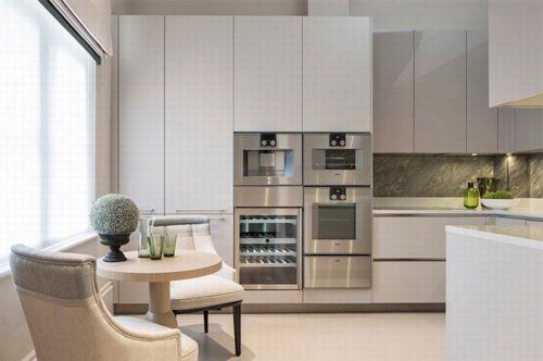 但与客室房间的温柔相反的是,厨房还是采用了较为硬朗的作法。不过也是可以理解的,一个流线干净的厨房才会让人有动力留在此处烹饪。