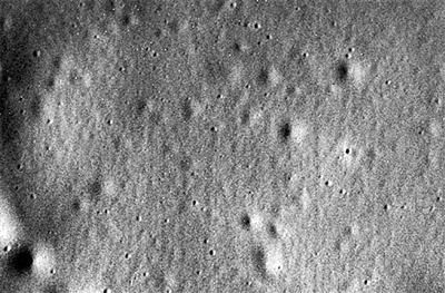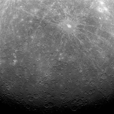 “信使”號撞擊水星表面前傳回的最後圖片。