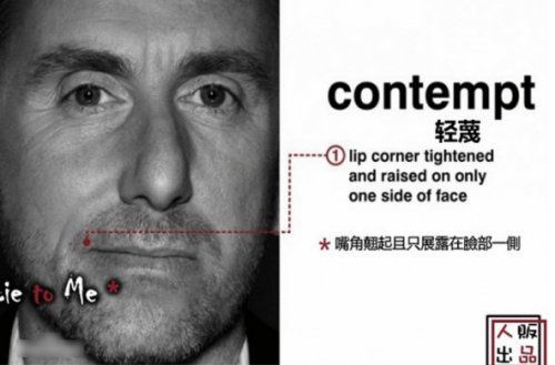 轻蔑的著名特征就是嘴角一侧擡起,作讥笑或得意笑状。