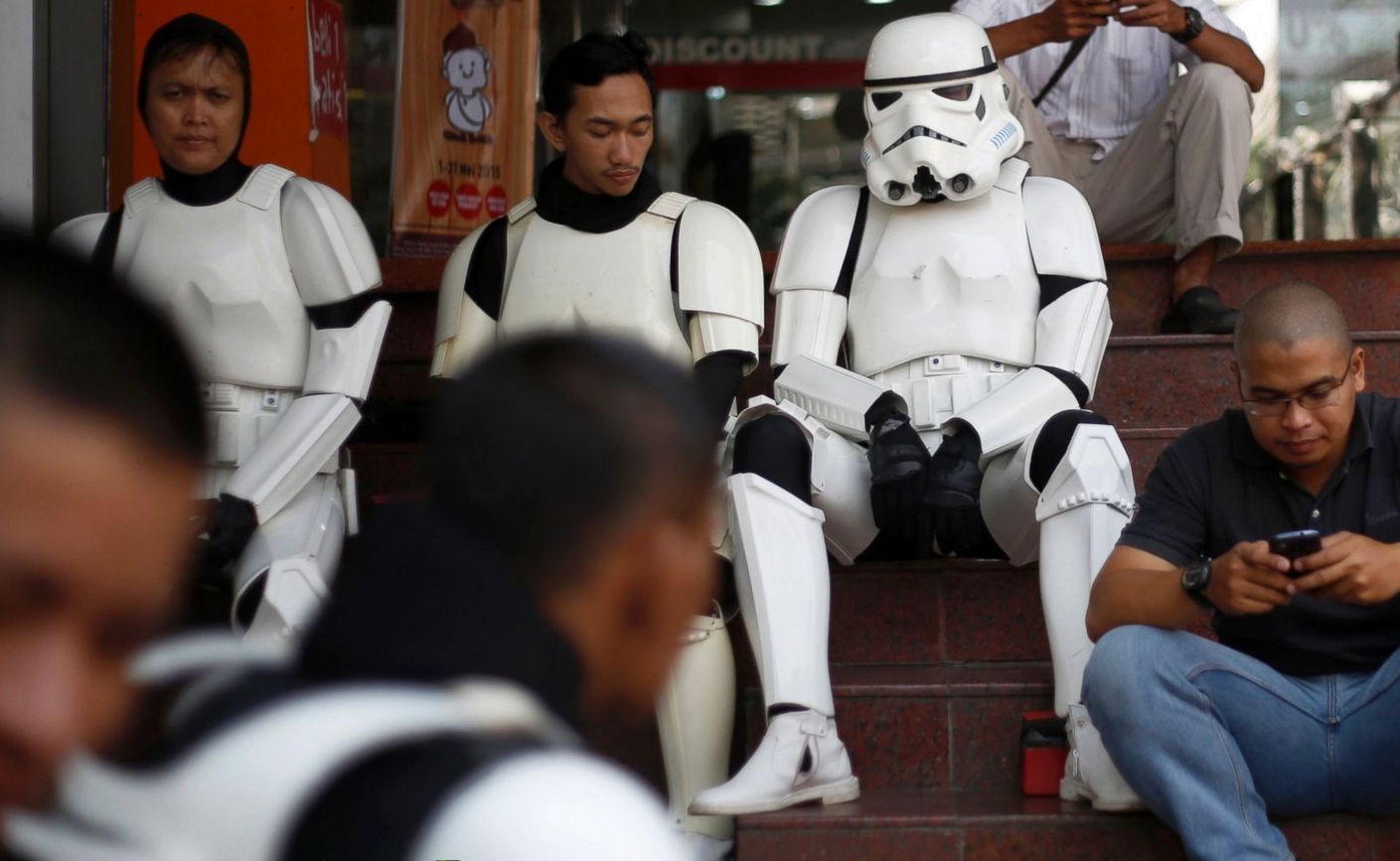 【新三才首發 楚鸞編譯】我們生活在多彩的世界,每天都會發生許多悲喜交加的事情,那麼最近又發生了什麼事情值得大家注意的呢?上圖為2015年5月19日,印度尼西亚雅加达某商场促销活动中,印尼男子装扮成电影“星球大战”,“冲锋队”中的人物促銷,中場休息的場景。