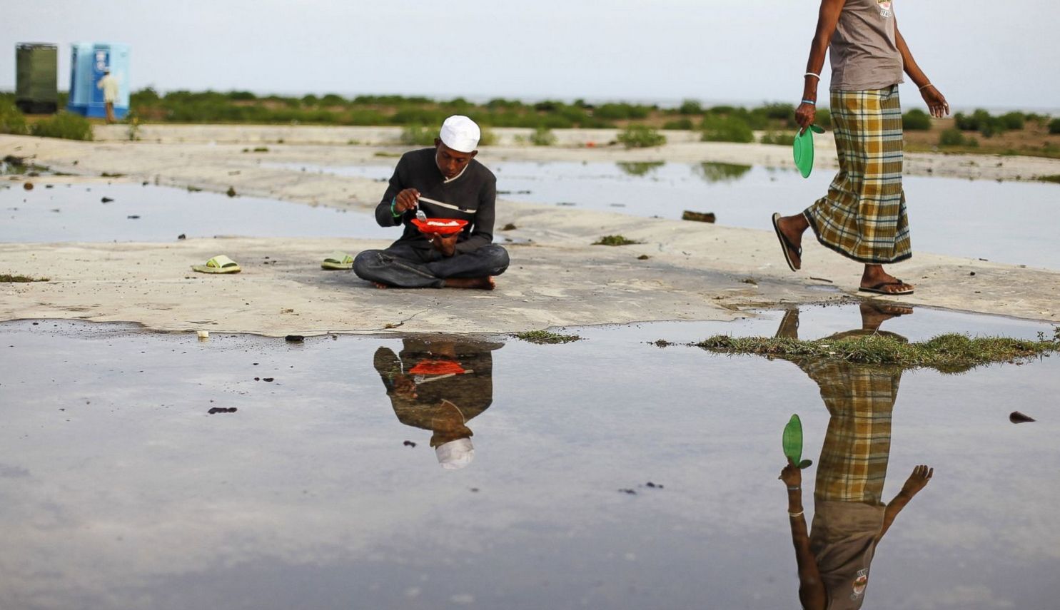 2015年5月17日,一个罗兴亚农民乘船抵达印尼,在吉隆坡一個臨時難民營裡吃早飯。