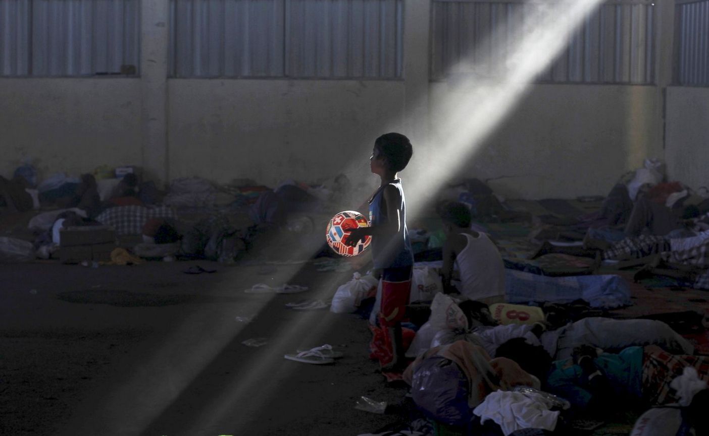 2015年5月19日,一个罗兴亚男孩抱著他的球前往吉隆坡朗萨 的難民營。联合国敦促印尼,马来西亚和泰国加紧海上救援行动,并停止阻止成千上万绝望的難民到陆地避难。