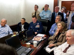 奥巴马等通过即时通讯观看美军抓捕本拉登的行动。