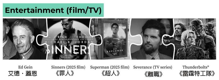 许多人在观看最新电影或电视剧时,都会先去《维基百科》查询,以瞭解更多关于製作、演员、剧情等资讯。2025年,有8则条目反映出这种现象: