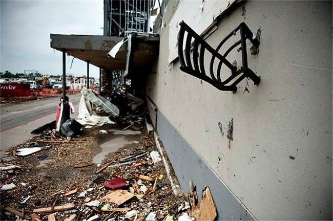 15、一張椅子就這樣卡在牆壁里。(該說是災害太強還是椅子太堅固?)