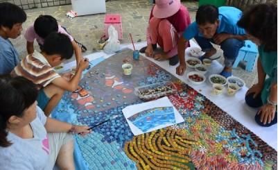 讓人感到恐怖的「虱目魚小子」的黑眼睛,畫出眼白,今天遊客看了後覺得舒服多了