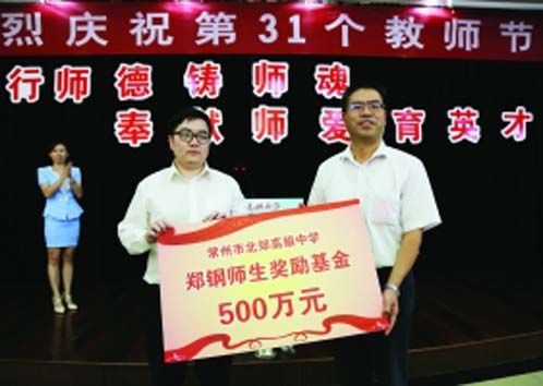 據現代金報報導,鄭鋼不僅捐助母校500萬元,更致贈 10名親身教誨過他的老師,每人一台筆記型電腦。北郊高中校長嚴玉林說,鄭鋼1998年進入北郊中學, 2004年畢業後,保送至南京大學理科強化班。2008年畢業後,鄭鋼努力經營事業,從房地產公司做起,之後自己創業,成為一名身家上億的職業金融投資客。