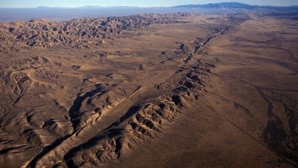美國加州的聖安德烈亞斯斷層(San Andreas Fault),這是一個地殼的巨大裂縫,約有1300公里長。該斷層線在超過3千萬年前,由兩個巨大的板塊,太平洋板塊和北美板塊碰撞而成。