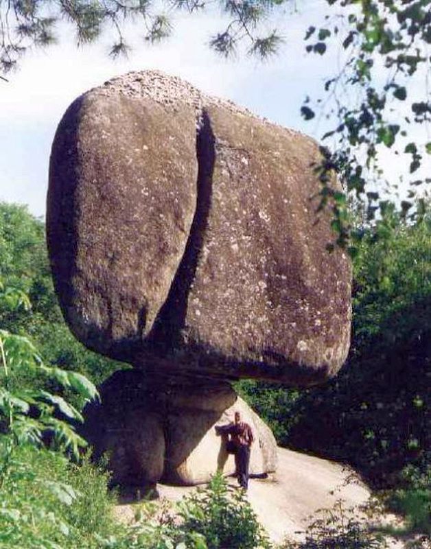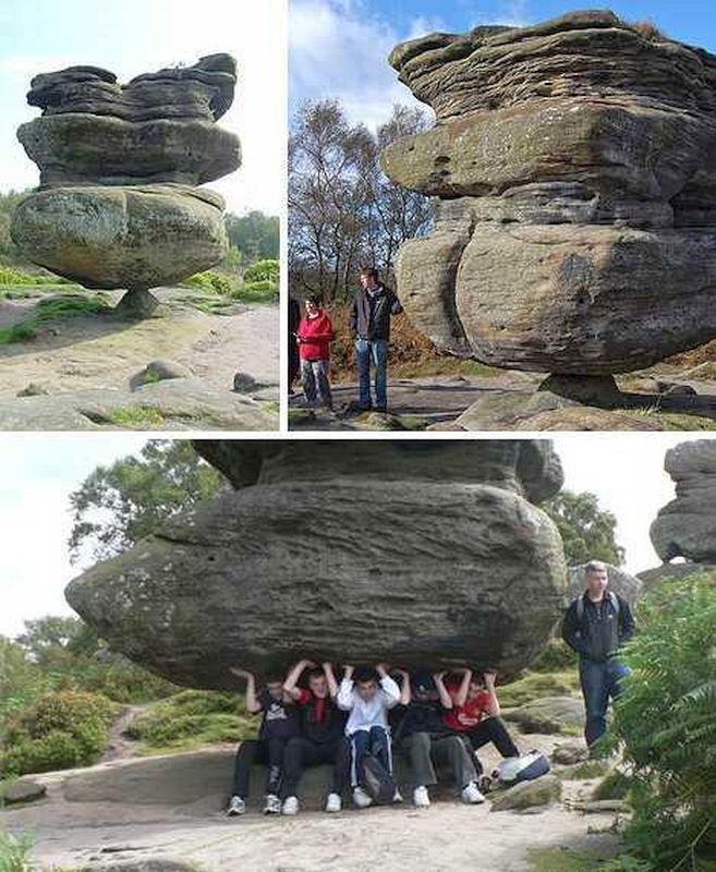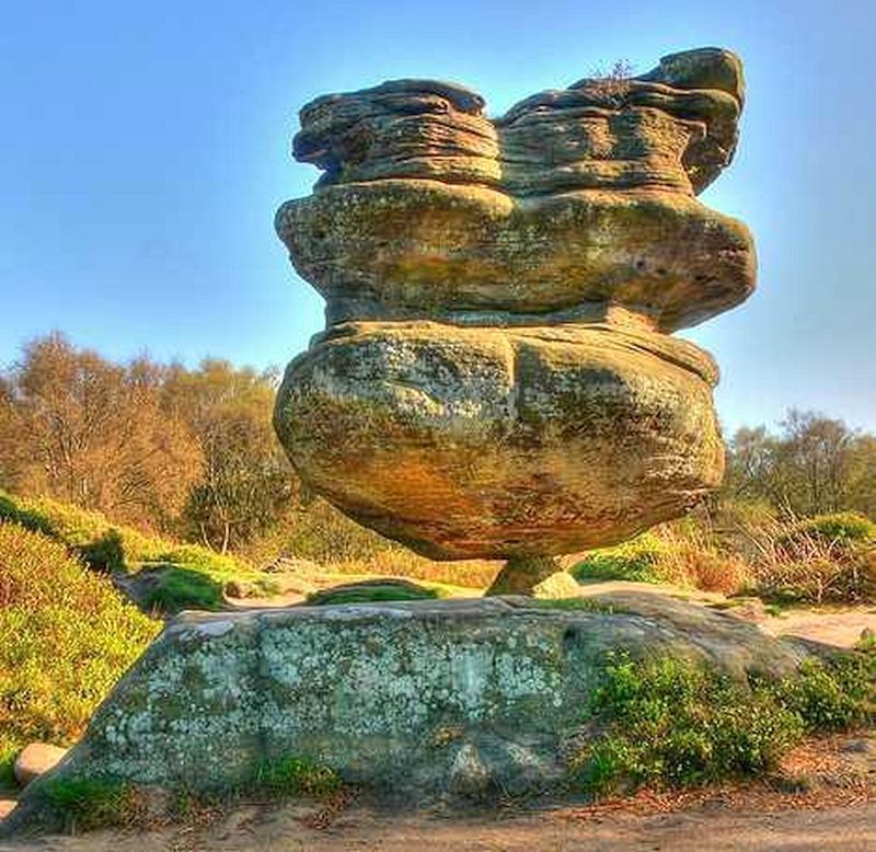 在英國北約克郡布里姆哈姆·摩爾方圓50英畝(約合300畝)的區域內,聳立着大量形狀怪異的平衡岩,其中最著名的當屬所謂的“偶像岩”。偶像岩的重量估計可達到200噸左右,令人意想不到的是,如此巨大的重量居然完全由一塊很小的金字塔形石頭支撐,如此驚人的組合和平衡令人嘆為觀止。