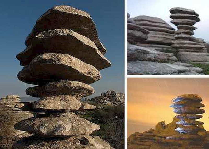 埃爾托卡自然保護區位於西班牙安達盧西亞南部山脈,擁有大量喀斯特石灰岩結構。這些高聳的岩石結構通常帶有尖頂,水平方向遭到風化和侵蝕。這種侵蝕往往形成巨大的“疊羅漢”結構,好似一摞烙餅,但它們要比外表看上去更為穩定。