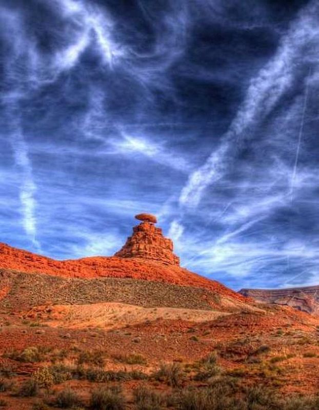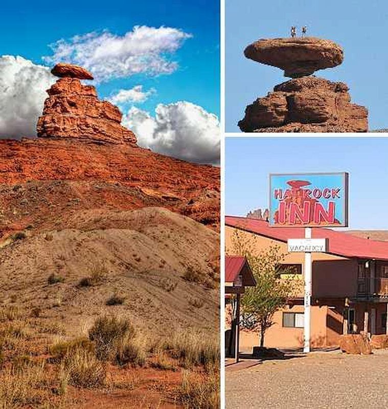墨西哥草帽岩位於猶他州中南部的紀念碑山谷外,寬60英尺(約合18米),高12英尺(約合3.7米),由露出地面的紅色砂岩構成。這種類型的岩石結構在當地“只此一處”。即使站在幾公裡外的地方,我們也能看到它的身影。墨西哥草帽岩有兩條指定的攀爬路線,專為勇敢的徒步旅行者準備。實際上,它並不是一個百分之百的平衡岩,冠岩藉助一個非常狹窄的頸狀結構立在基岩之上。隨着時間的流逝,冠岩遲早會轟然倒下,這是不可避免的命運。因此,徒步旅遊者應該抓緊時間,親自前往猶他州感受墨西哥草帽岩的無窮魅力。
