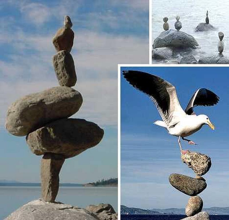 天然平衡岩帶給我們的那種彷彿時間停止的靜態之美成為很多藝術家的靈感源泉,他們不斷嘗試着複製這種不可思議的平衡之美。很顯然,這絕不是一件容易的事情。面對大自然的鬼斧神工,人類的創造力有時顯得非常渺小。儘管事實如此,平衡岩藝術仍受到很多人的推崇,其中不乏一些才華橫溢的藝術家。