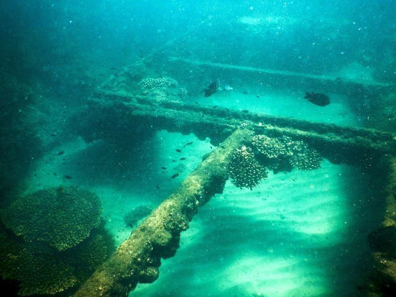 沉船的骨架提供了绿色海龟和彩虹鱼的藏匿地点。