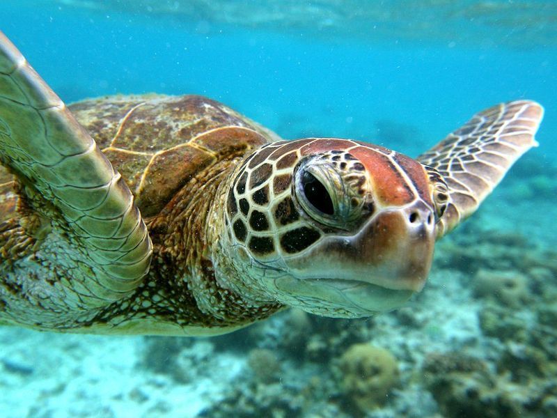 摩顿湾有大量绿蠵龟,即使不是它的产卵季节,海龟依然很活跃。