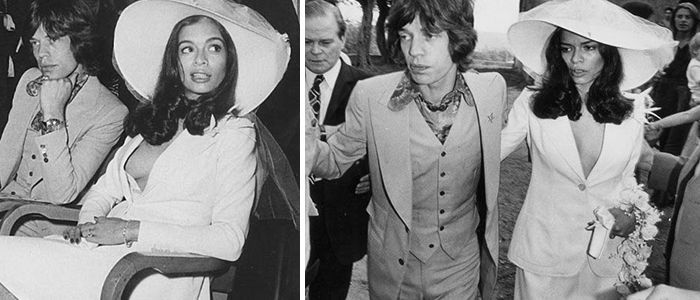 (第十五套)怀孕的比安卡•贾格尔(70年代欧美时尚偶像和女演员)穿着圣罗兰(是一个奢侈的时装品牌,由设计师伊夫•圣洛朗及其伴侣贝尔杰所创立。风格精致高雅) 白西装参加她的婚礼。这件衬衣,她打算穿不合身,于是她在她的外套下面什么也没有穿着。