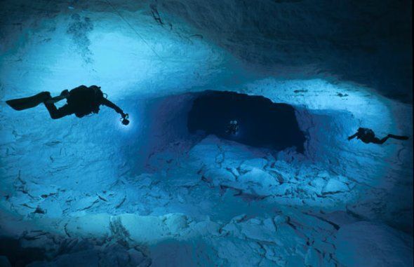 2000年,史蒂夫-馬什(前景)和菲爾-多特(背景)潛入到墨西哥格蘭沼穴中。